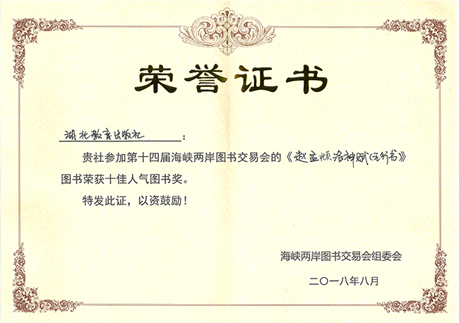日前,海峽兩岸圖書(shū)交易會(huì)組委會(huì)公布了首屆“海圖會(huì)十佳人氣圖書(shū)獎(jiǎng)”名單。教育社《趙孟頫洛神賦(元行書(shū))》獲此殊榮。