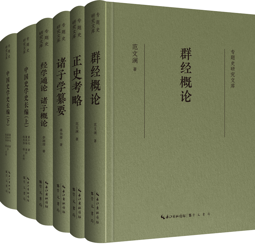 專題史研究文庫(第一輯)簡介本套書精選6種中國學(xué)術(shù)史經(jīng)典作品,包括著名歷史學(xué)家范文瀾的《群經(jīng)概論》《正史考略》,著名學(xué)者蔣伯潛的《諸子學(xué)纂要》、李源澄的《經(jīng)學(xué)通論 諸子概論》、董樸垞的《中國史學(xué)史長編》。其中,《群經(jīng)概論》《經(jīng)學(xué)通論》為簡明精當(dāng),高屋建瓴的經(jīng)學(xué)史著作;《諸子概論》《諸子學(xué)纂要》為敘事清晰,可讀性強(qiáng)的先秦學(xué)術(shù)史著作;《正史考略》詳細(xì)考述二十五史;《中國史學(xué)史長編》則是一部上起先秦、下迄民國的首尾完整的中國史學(xué)發(fā)展通史。《中國史學(xué)史長編》為首次點(diǎn)校整理,《群經(jīng)概論》《正史考略》為首次出版簡體單行本。出版單位:崇文書局