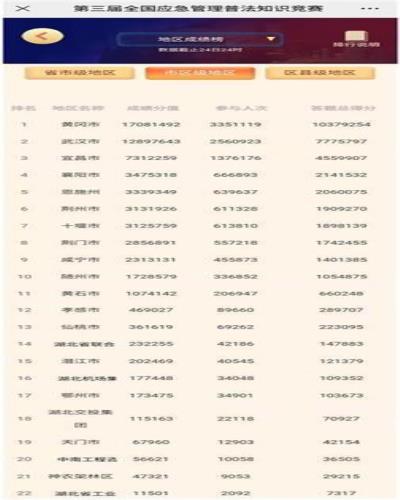 第三屆全國應(yīng)急管理普法知識競賽由應(yīng)急管理部、司法部、中華全國總工會、全國普法辦聯(lián)合主辦。湖北省賽區(qū)參賽工作由省應(yīng)急管理廳、省司法廳、省總工會、省普法工作辦公室組織,競賽分集訓(xùn)營、實(shí)戰(zhàn)營、總決賽,采用線上答題模式,通過掃描競賽答題平臺二維碼進(jìn)行學(xué)習(xí)答題。