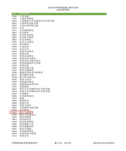 12月27日,中國科學(xué)技術(shù)信息研究所發(fā)布了2021年中國科技論文統(tǒng)計結(jié)果,《統(tǒng)計與決策》在2018年首次入選后,今年繼續(xù)入選《2021年版中國科技核心期刊目錄(社會科學(xué)卷)》。