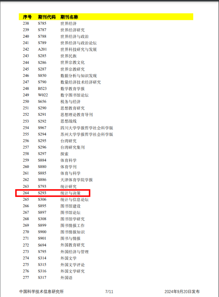 《統(tǒng)計(jì)與決策》入選“2024年中國(guó)科技核心期刊目錄”