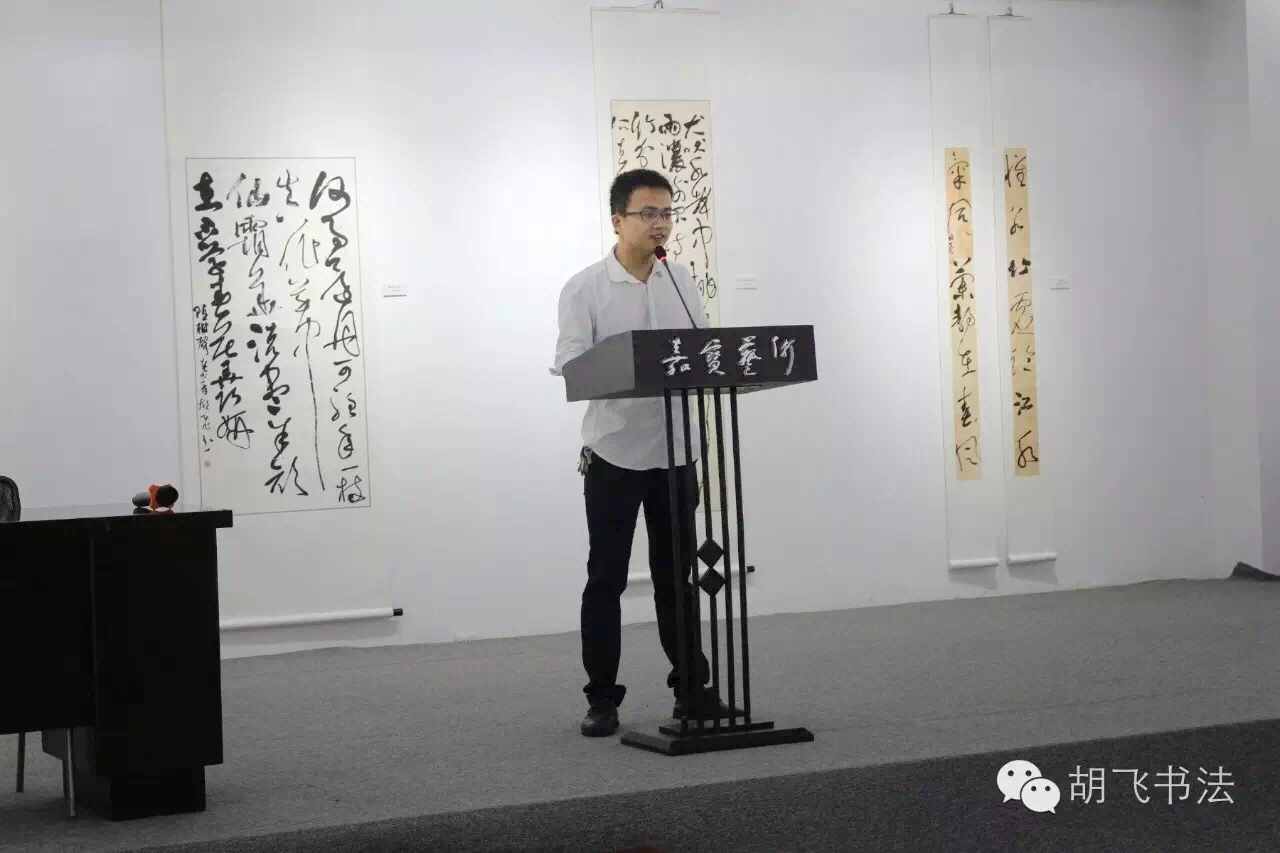 8月20日,由湖北省書(shū)法家協(xié)會(huì)指導(dǎo),湖北省青年書(shū)法家協(xié)會(huì)、湖北美術(shù)出版社主辦,湖北嘉寶藝術(shù)有限公司承辦的“文心若水——胡飛書(shū)法作品展”開(kāi)幕式暨胡飛書(shū)法研討會(huì)在嘉寶美術(shù)館舉行?;顒?dòng)邀請(qǐng)到諸多省內(nèi)著名書(shū)法家及文藝界人士。開(kāi)幕式由湖北省書(shū)法家協(xié)會(huì)副主席葛昌永主持,介紹了出席活動(dòng)的嘉賓領(lǐng)導(dǎo)。湖北嘉寶藝術(shù)公司董事長(zhǎng)胡正友先生代表嘉寶公司感謝出席活動(dòng)的各界領(lǐng)導(dǎo)專家,并表示作為國(guó)有文化企業(yè)將一如既往的支持和鼓勵(lì)青年藝術(shù)家創(chuàng)作道路。湖北省文聯(lián)黨組成員、副主席、省青年書(shū)協(xié)主席羅丹青先生為展覽致辭,對(duì)當(dāng)今書(shū)壇青年藝術(shù)家的創(chuàng)作狀態(tài)及藝術(shù)家胡飛的創(chuàng)作道路表示欣慰和期待,對(duì)展覽的開(kāi)幕表示祝賀。隨后,藝術(shù)家胡飛與觀眾分享了本次參展作品的創(chuàng)作歷程和思路,為開(kāi)幕式畫(huà)上完美句號(hào)。