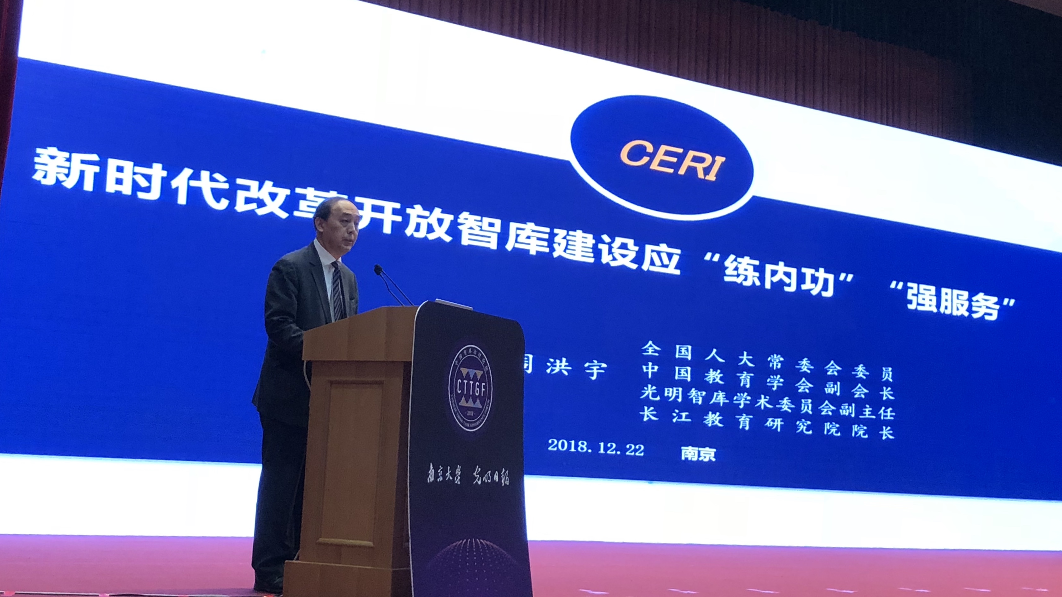 12月22日,由光明日報社、南京大學聯(lián)合主辦的“2018中國智庫治理暨思想理論傳播高峰論壇”在南京舉行。第十三屆全國人大常委會委員、中國教育學會副會長、中國教育發(fā)展戰(zhàn)略學會副會長、湖北省人大常委會副主任、光明智庫學術(shù)委員會副主任、長江教育研究院院長周洪宇受邀出席論壇并以《 新時代改革開放智庫建設應“練內(nèi)功”“強服務”》為題做主旨報告。周洪宇院長及我院學術(shù)委員會委員付衛(wèi)東等專家撰寫的《<鄉(xiāng)村教師支持計劃實施的現(xiàn)狀、問題及對策——中西部6省12縣(區(qū))120余所鄉(xiāng)村學校調(diào)研報告>系列成果》入選中國智庫索引(CTTI)2018年度精品成果。